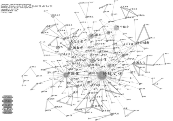 图2 2000—2024年间马克思主义与中华优秀传统文化相结合研究关键词共现知识图谱